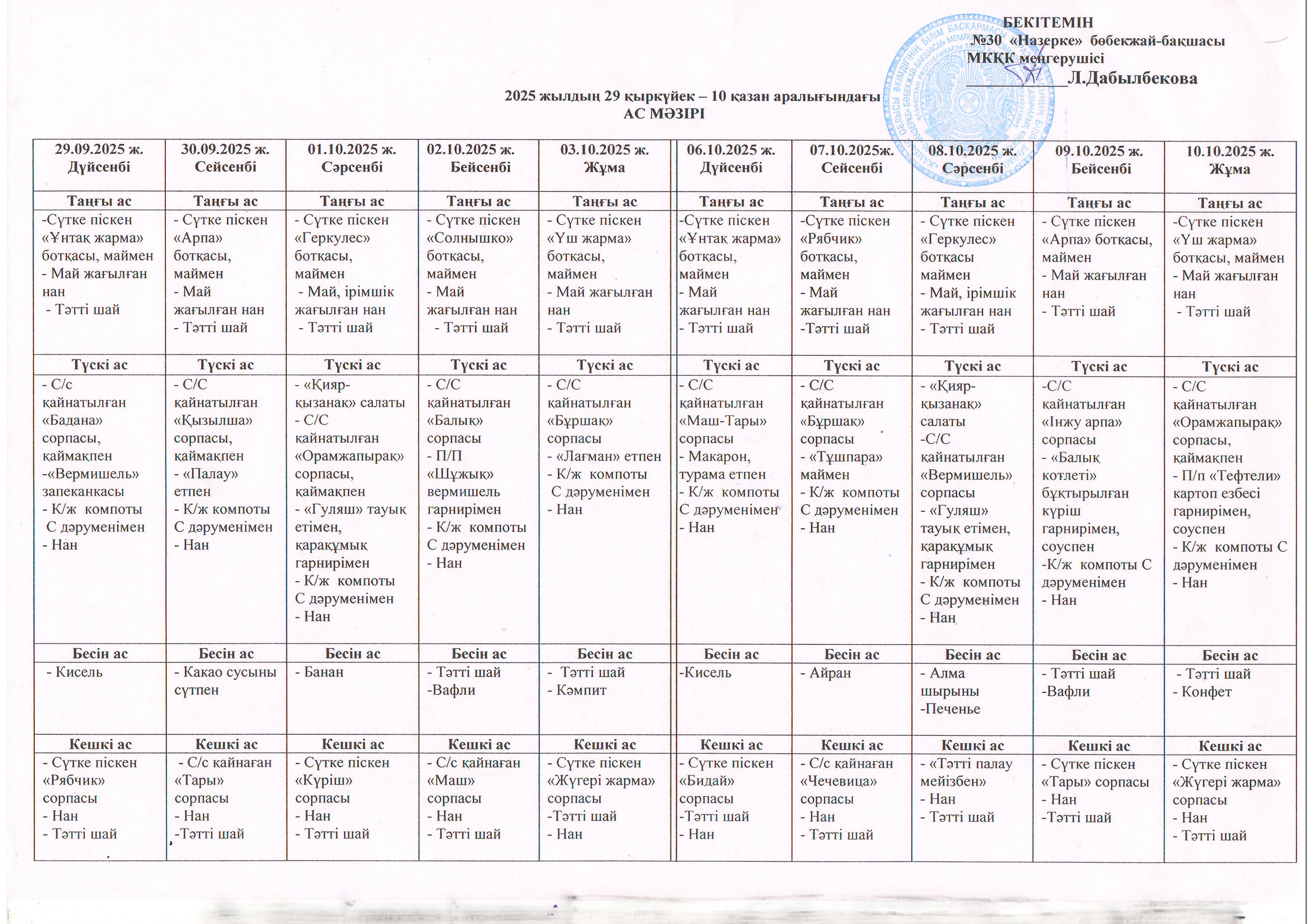 Ас мәзірі » №30 «Назерке» бөбекжай бақшасы