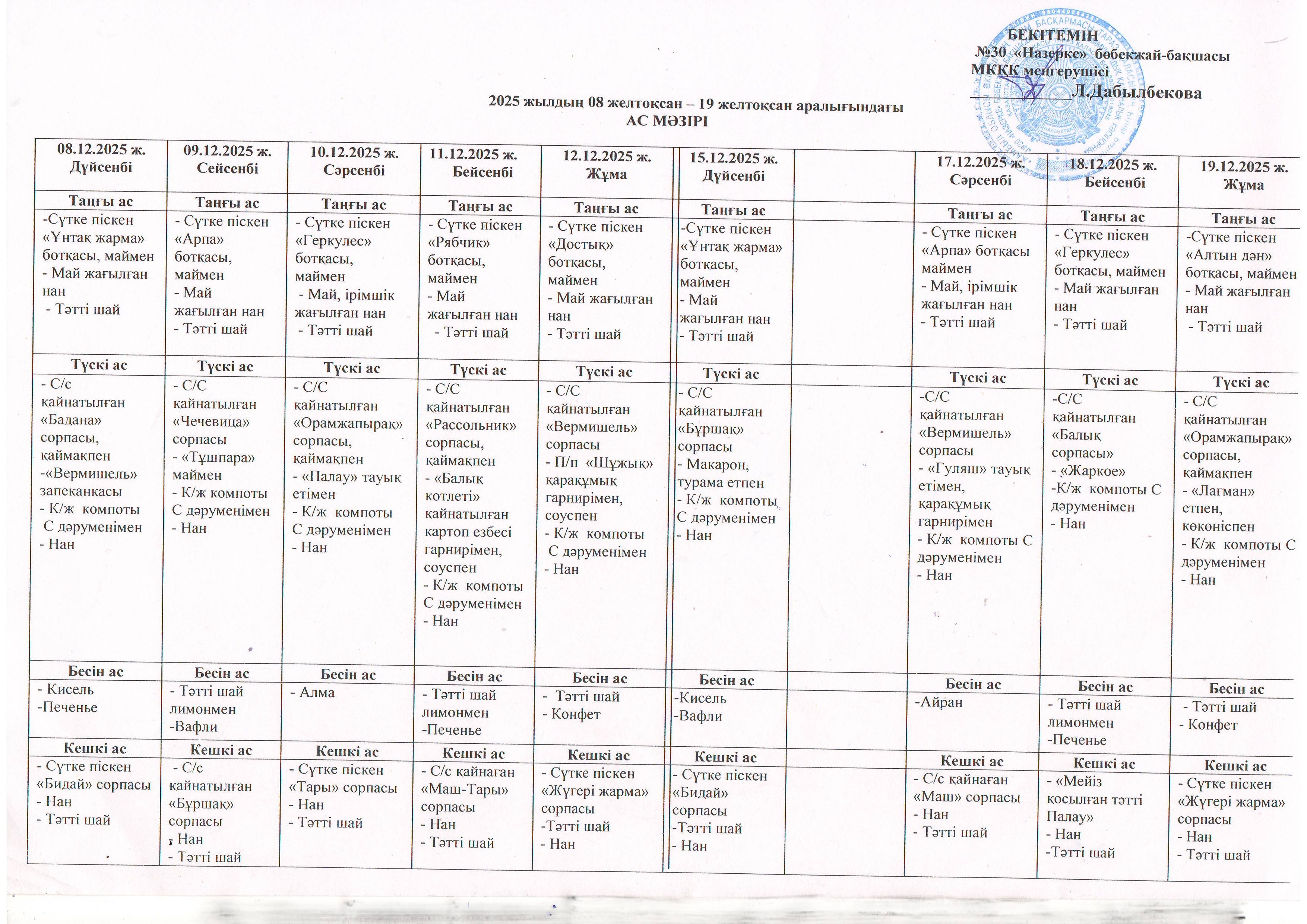 Ас мәзірі » №30 «Назерке» бөбекжай бақшасы