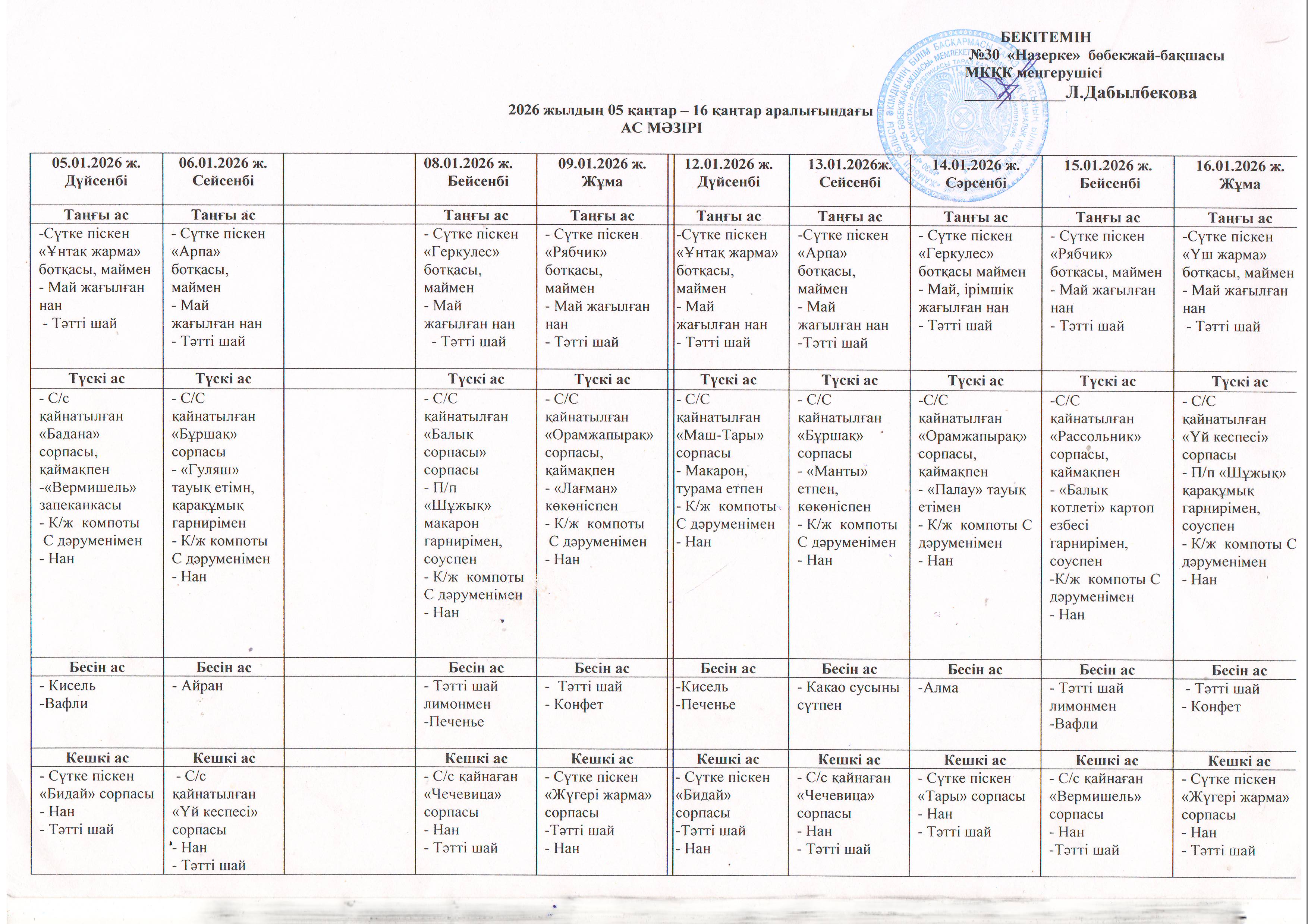 Ас мәзірі » №30 «Назерке» бөбекжай бақшасы