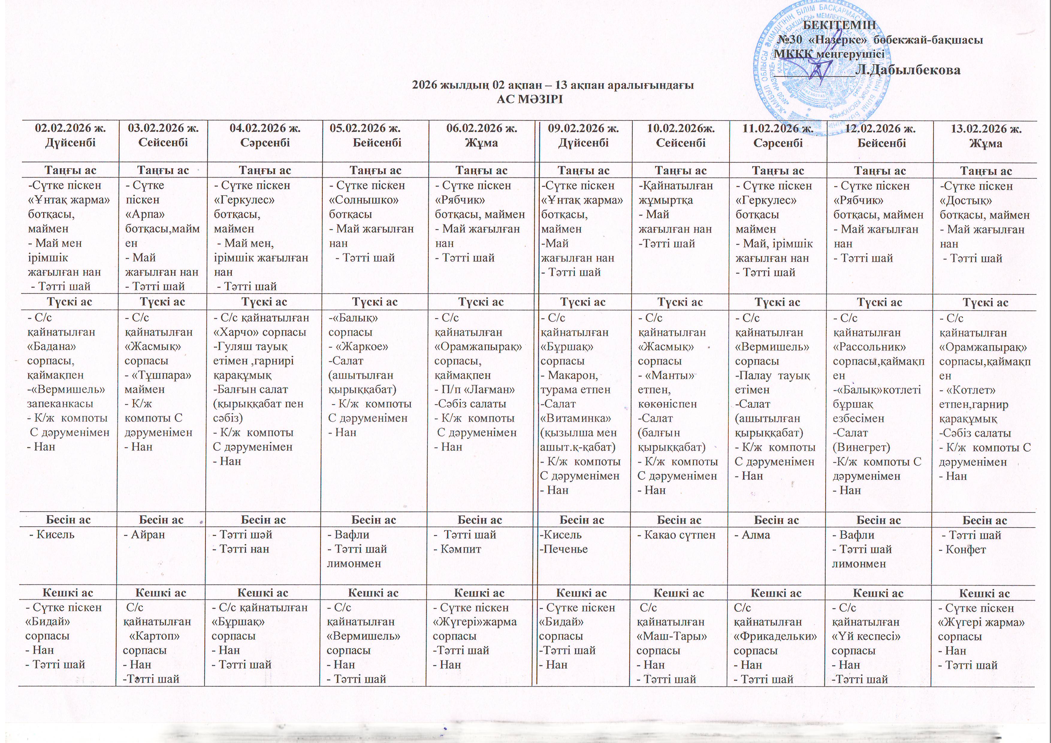Ас мәзірі » №30 «Назерке» бөбекжай бақшасы